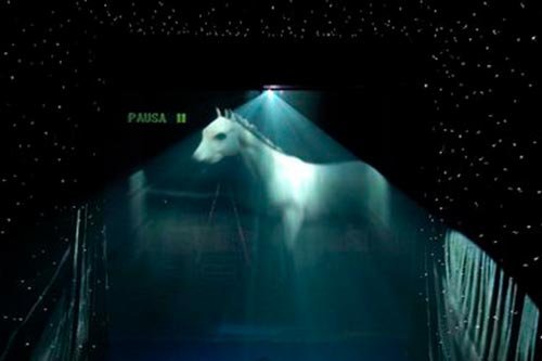 El segundo es a través de un gran holograma que contiene una pirámide de cristal en su interior. Están construidos de una manera más perfeccionista y por lo tanto tienen un enfoque más profesional. Utilizan el mismo efecto que el reflejo de la luz, pero son mucho más grandes y de calidad.